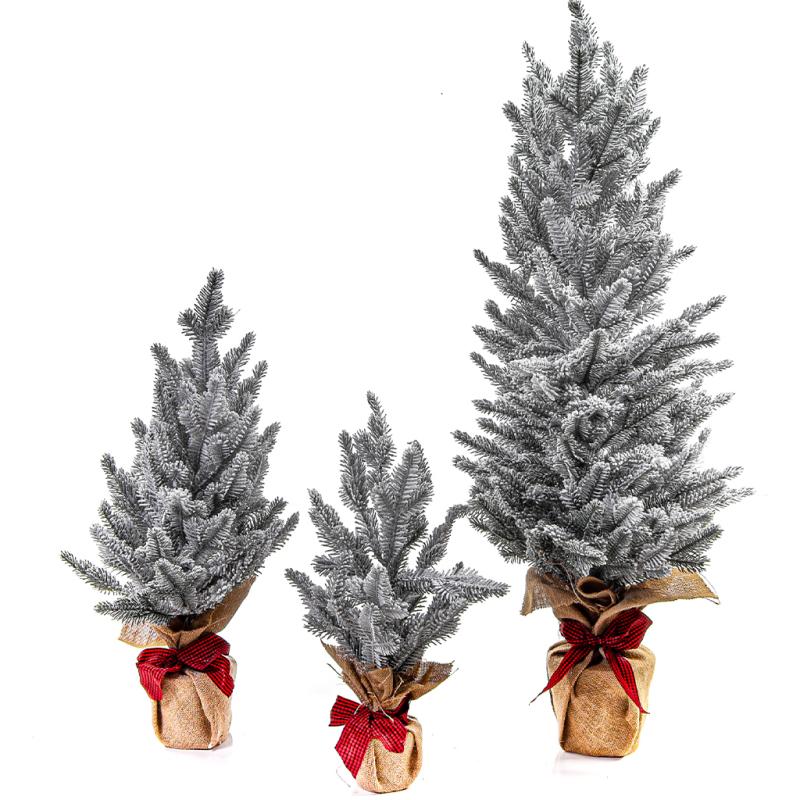 Table Top Artificial Tree Flocked Pine Burlap