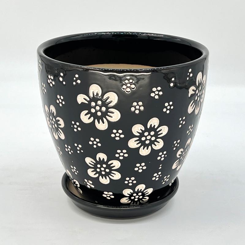 Micks Picks Floral Print Pot With Unattached Saucer Black