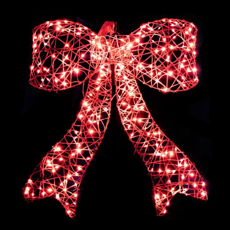 This 24-inch lighted leather thread red bow features 240 LED Red lights with a random twinkle effect (every 5 lights, 1 twinkles), and a plug that can be used both indoors & outdoors.