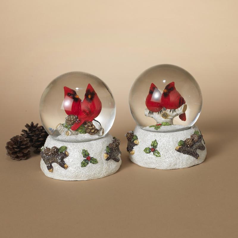 Description: This Gerson Holiday Cardinal Water Globe is a 2 designs of resin that are 5.1" high. The over dimensions: L4.13" x W4.13" x H11".