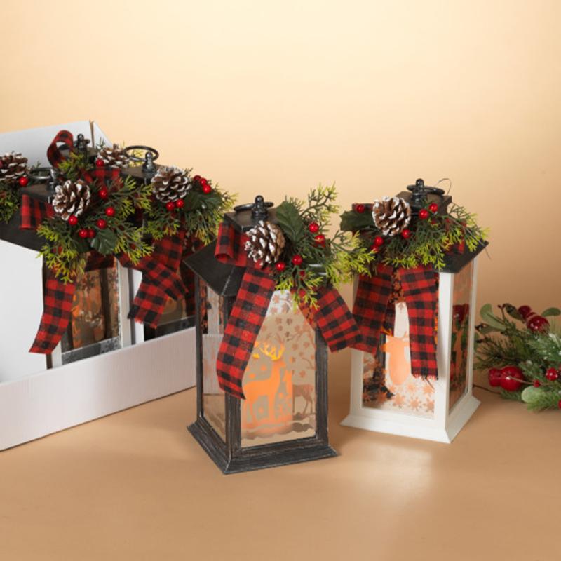 Description: 11.6"H B/O Lighted Holiday Lantern w/ LED Candle & Floral Accent, 2 Assorted