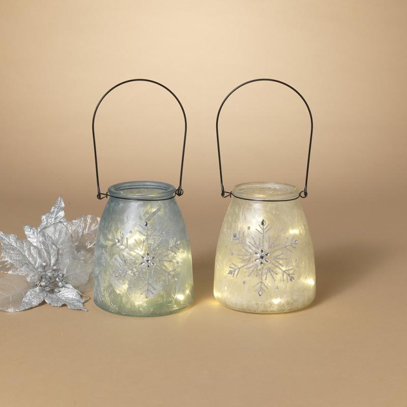 Gerson Battery Operated Lighted Glass Snowflake Luminary