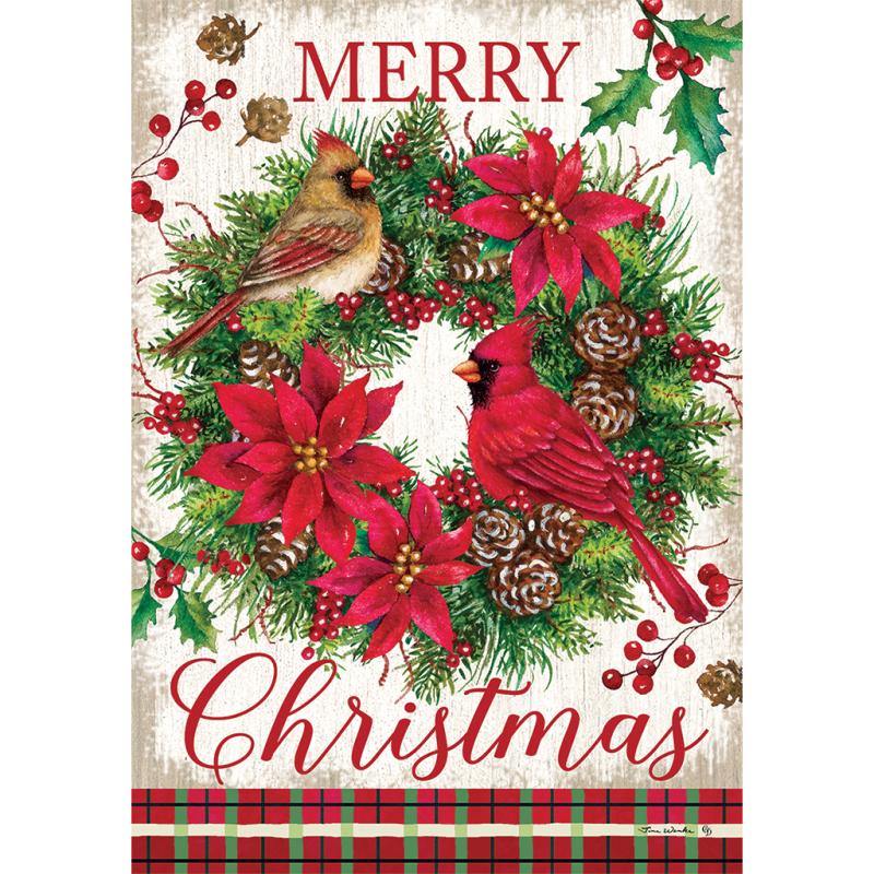 Description: This Cardinal Wreath Garden Flag from Custom Decor welcomes you in the season. It is one of their gorgeous double-sided flags, proudly printed here, in-house, in the USA! Each flag is printed using fade-resistant ink on luxurious, velvety, soft, heavyweight fabric, creating a beautiful drape showcasing its stunning design.