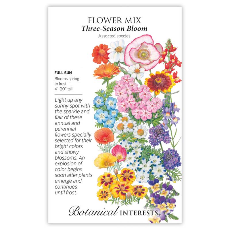 Three Season Bloom Flowers Mix Botanical Interests Flowers Seeds