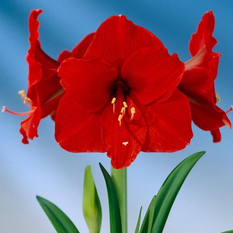 | Amaryllis in a red tin pot is a striking holiday favorite, featuring a bold emerging bud that quickly develops into large, trumpet-shaped blooms in vibrant shades of red, white, and pink varieties. Nestled in a decorative red metal container, it adds instant festive charm to tabletops, kitchens, and gift displays. Easy to grow and dramatic in bloom, Amaryllis delivers weeks of stunning winter color with minimal care and timeless seasonal appeal. |