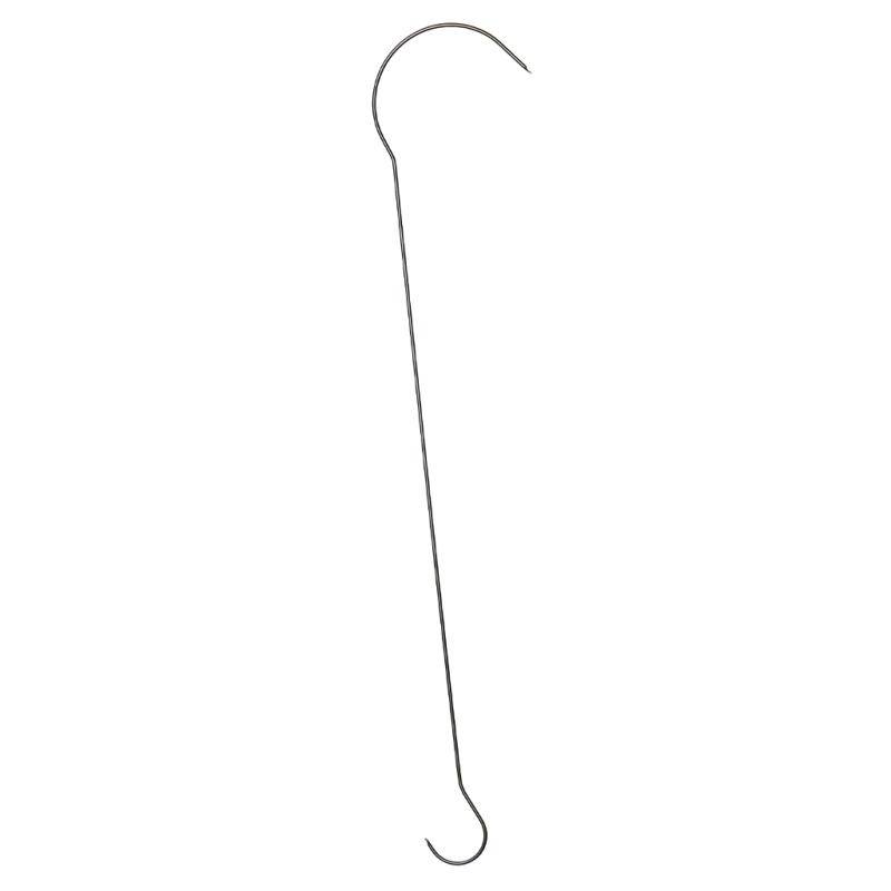 | Bird feeder hook. Made of durable black powder coated steel. Large opening of 1.5" is ideal to wrap around tree branch. Smaller opening of 3.5" holds bird feeder securely even when the entire flock visits for dinner. Can hold up to 15 lb. when connected securely to another hook or sturdy tree branch. |