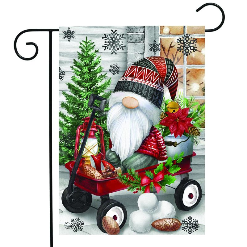 Description: Wagon Gnome Garden Flag measures 18" x 12.5". Add a colorful, welcoming touch of the season to your home and garden with a premium decorative flag from Briarwood Lane. Their original artwork, printed on polyester material, is designed for outdoor display and provides unique designs that are as durable as they are beautiful! The text is correctly readable on one side. Flag stands are sold separately.