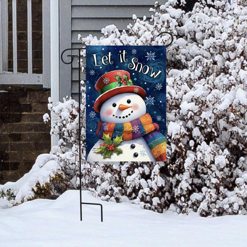 | The Friendly Winter Snowman Garden Flag Let It Snow It measures 18" x 12.5" and adds a colorful, welcoming touch of the season to your home entrance and garden with a premium decorative flag from Briarwood Lane. Their original artwork, printed on polyester, is designed for outdoor display and offers unique designs that are as durable as they are beautiful! The text is correctly readable on one side. The flagpole is sold separately. |