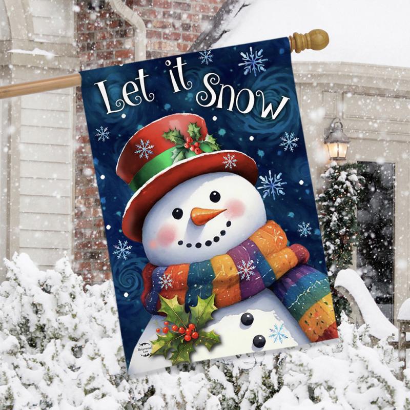 | The Friendly Winter Snowman House Flag Let It Snow It measures 40" x 28" and adds a colorful, welcoming touch of the season to your home and garden with a premium decorative flag from Briarwood Lane. Their original artwork, printed on polyester, is designed for outdoor display and offers unique designs that are as durable as they are beautiful! The text is correctly readable on one side. The flagpole is sold separately. |