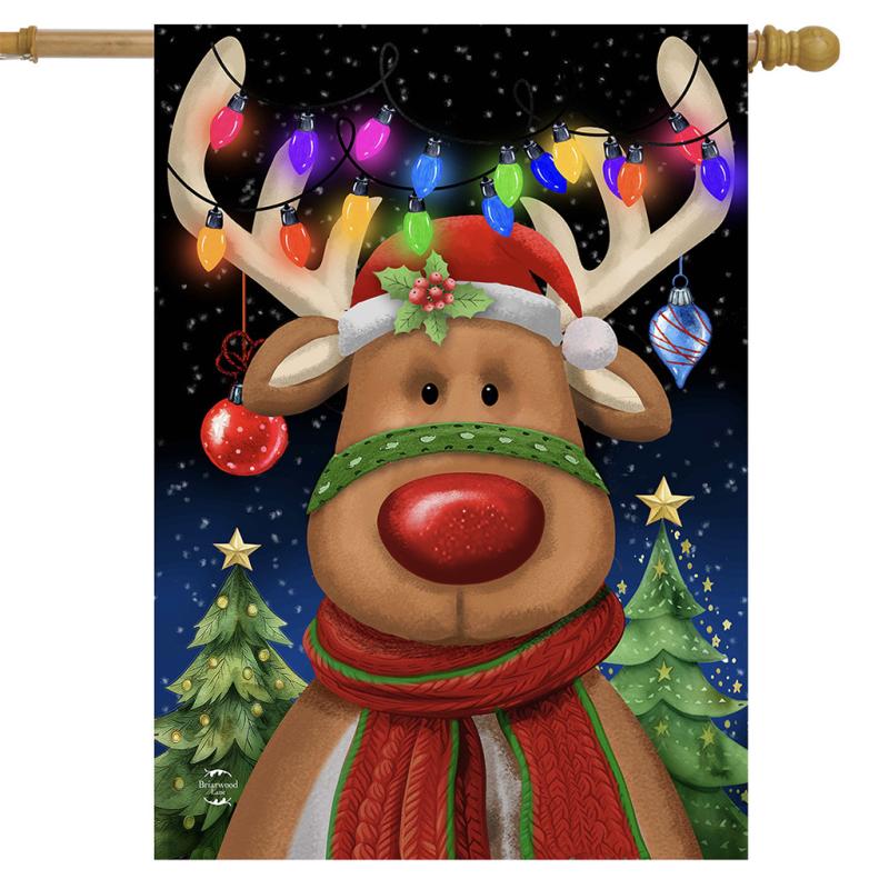 Description: The Festive Reindeer Home Flag measures 18" x 12.5". That adds a colorful, welcoming touch of the season to your home and garden with a premium decorative flag from Briarwood Lane. Their original artwork, printed on polyester material, is designed for outdoor display and provides unique designs that are as durable as they are beautiful! The text is correctly readable on one side. Flag stands are sold separately.
