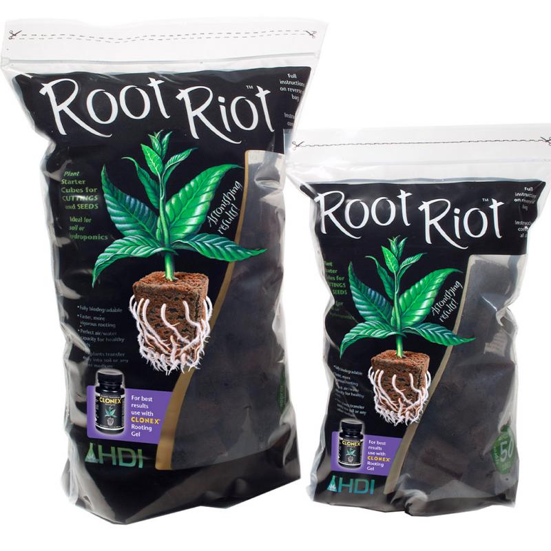 | Root Riot™ is a natural plant starter cube ideal for soil or hydroponics. Suitable for both propagating cuttings and starting seeds, these cubes have consistently outperformed alternative media. Root Riot cubes provide the perfect environment for root initiation and development. Made from composted natural materials, these plant starter plugs have a great spongy texture which retains the ideal air/water ratio for healthy, rapid root growth. |