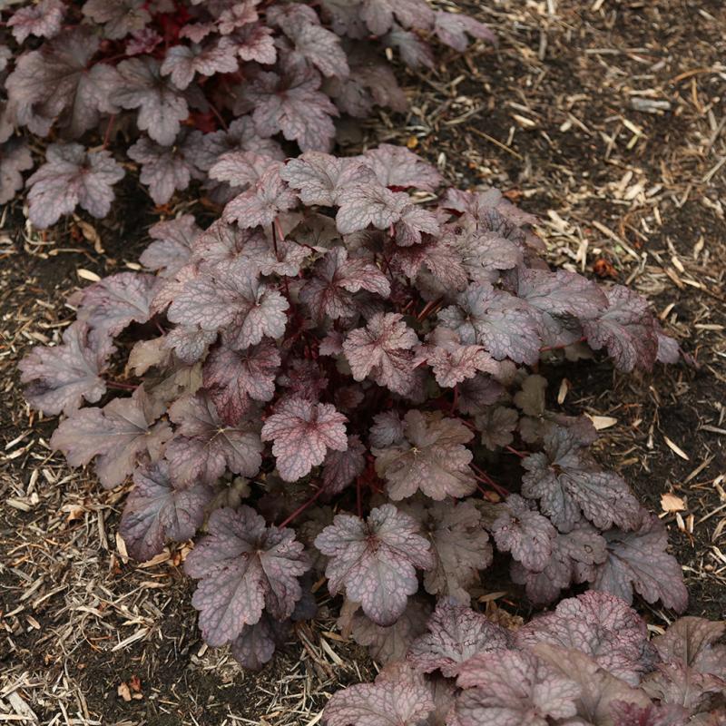 Description: Plum-colored foliage with darker purple veins. The leaves have a nice ruffle and pointed tips. When planted en masse, it forms a spreading clump and makes an excellent ground cover. Creamy white flowers appear in early summer. This is a Terra Nova® introduction.