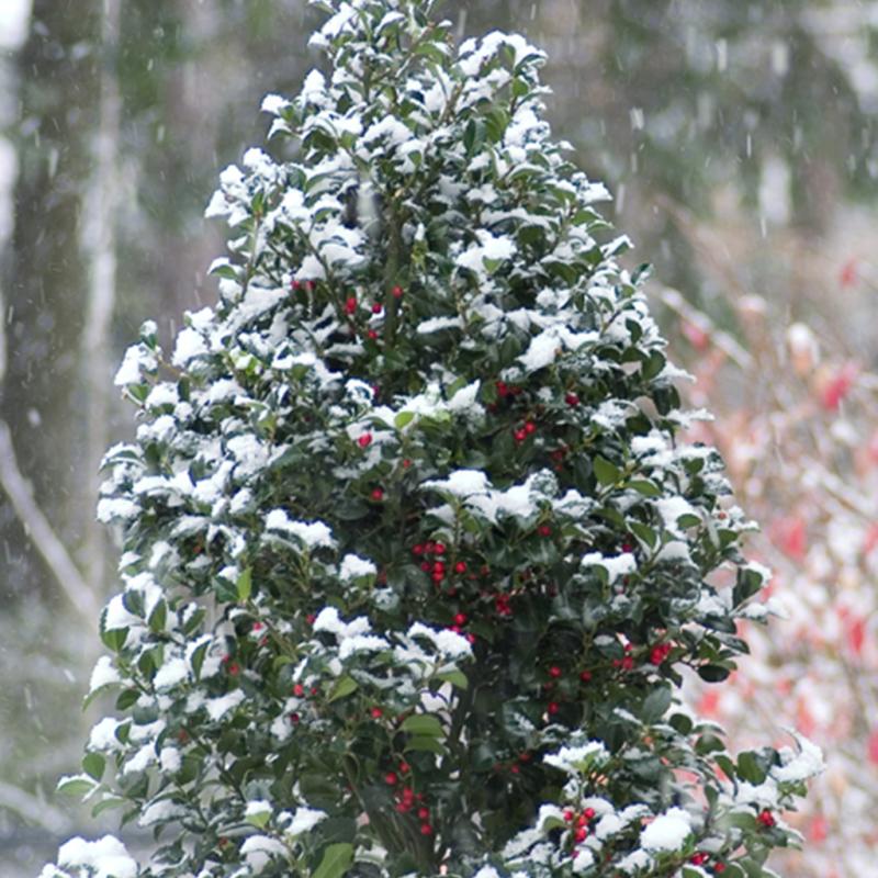 | Castle Spire® is an improvement over other blue holly because of its superior branching and shinier foliage. Bright red berries and red fall color provide another season of interest. A great foundation plant, specimen or hedge plant can be used as a replacement for upright yew. It is best to plant broadleaf evergreens in colder climates so that they are not exposed to winter sun or wind. Adaptable to wet soils. Hybrized by Holger Hachmann, of Germany. Use Castle Wall® as the pollinator. Introduced by Proven Winners® ColorChoice®. (CPBR 2314) |