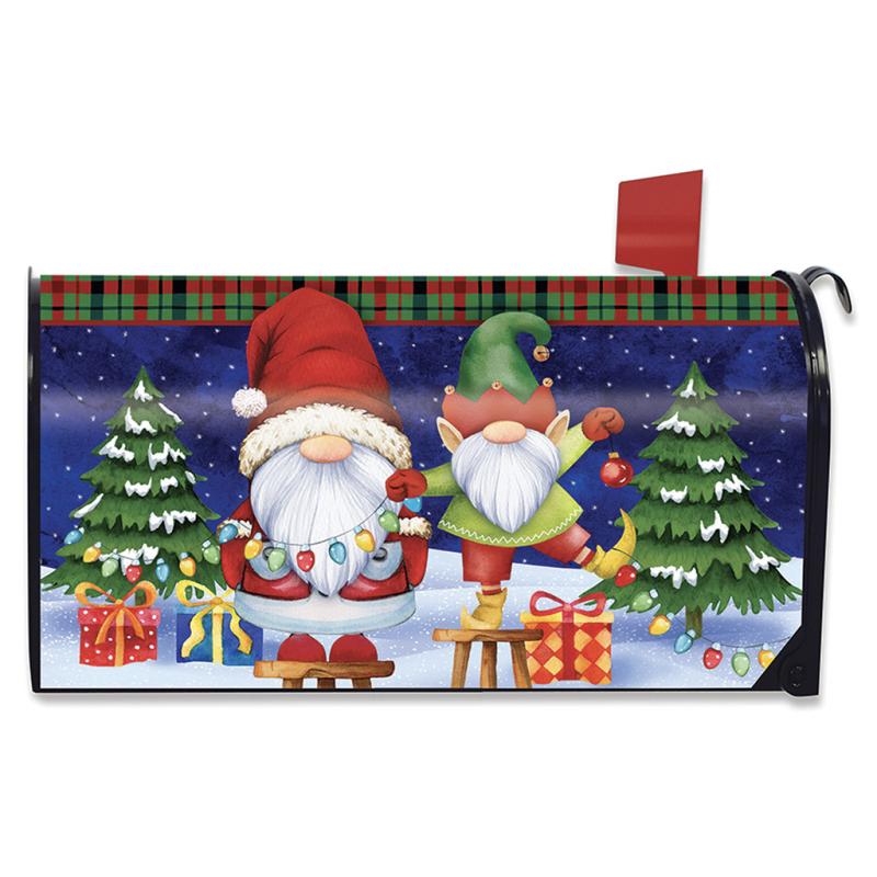 | The Christmas Gnomes Humor Mailbox Cover is made to fit standard-size steel mailboxes measuring 6.5"W x 19"L. Our mailbox covers are easily attached to steel mailboxes using magnetic strips on each side. Their original artwork, printed on material designed for outdoor display, provides unique designs that are as durable as they are beautiful! With designs for every holiday, theme, and season, Briarwood Lane will surely offer the perfect decorative accent! Each mailbox cover has optional punch-out holes and includes plastic straps for additional security against theft/extreme weather. It also consists of three sets of adhesive numbers. |