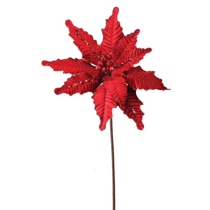Silk Flowers Red Glitter Edge Bead Velvet Poinsettia