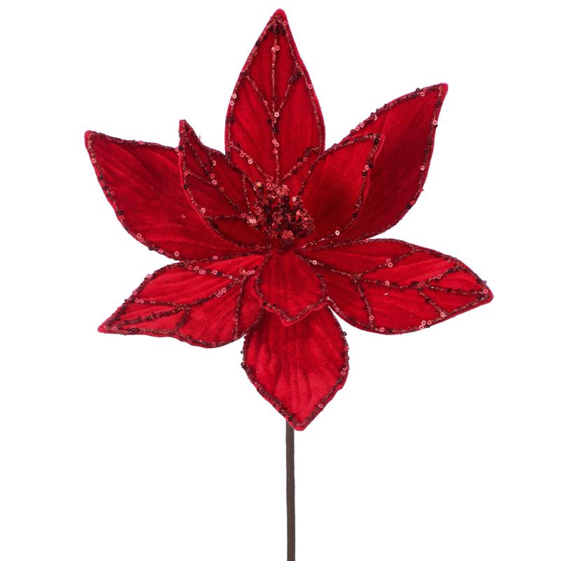 Silk Flowers Burgundy Velvet Sequin Strip Poinsettia Regency International