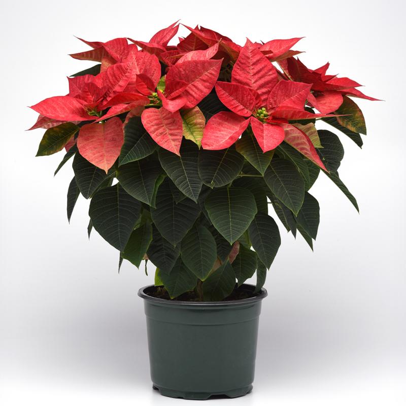 Description: Poinsettia Christmas Beauty Queen is a premium holiday variety featuring large, saturated crimson-red color bracts with a smooth, velvety finish and elegant form. Its strong, upright growth habit creates a complete, symmetrical plant with excellent shelf life. Deep green foliage provides a striking contrast, enhancing the brilliance of the red. Known for durability and long-lasting color, Christmas Beauty Queen is ideal for homes, businesses, churches, and upscale seasonal displays that demand classic Christmas impact.