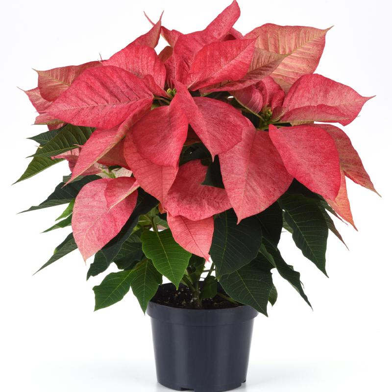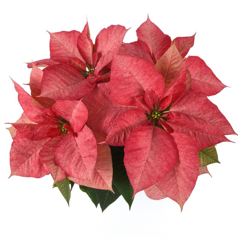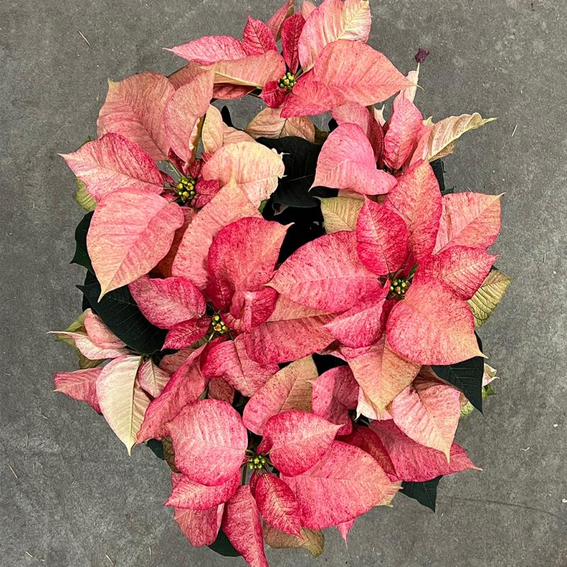 | Christmas Aurora Queen is a stunning poinsettia variety featuring beautifully marbled bracts in soft shades of creamy white, blush pink, and gentle rose. Each bract displays a unique, painterly pattern, giving the plant an elegant, upscale appearance. Lush deep-green foliage provides rich contrast and fullness. With a strong, symmetrical growth habit and long-lasting color, Aurora Queen is perfect for sophisticated holiday décor, gift giving, and standout seasonal displays in homes and businesses. |