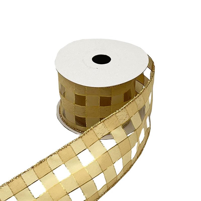 Plaid Theme Ribbon Assorted Gold Wired Ribbon 25ft (8.3yds)