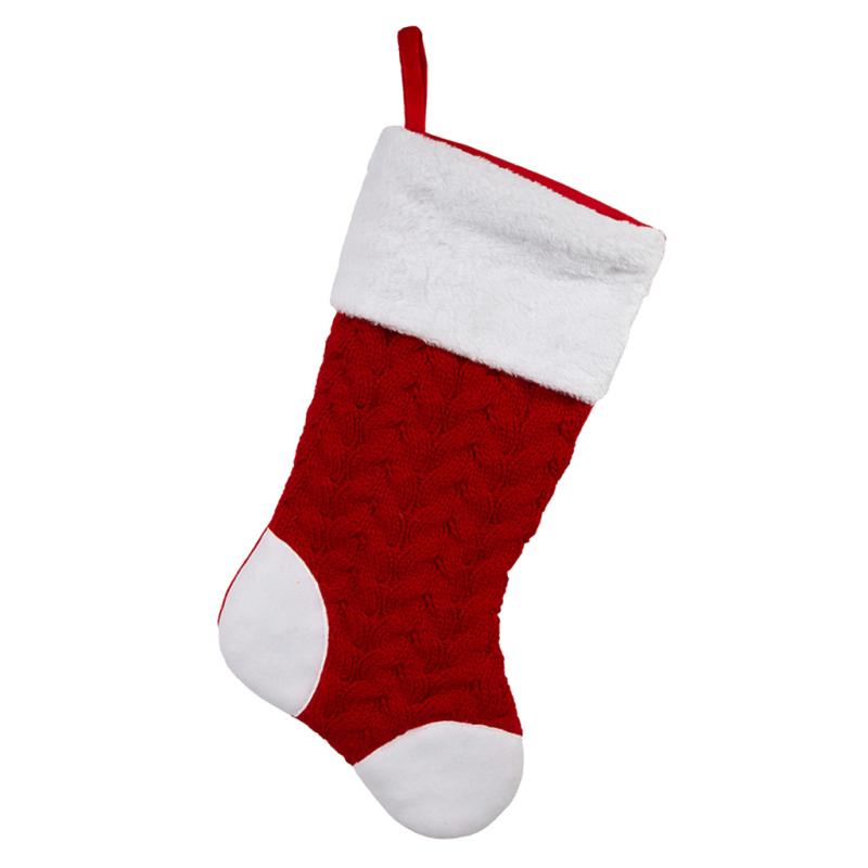 This red and white cable knit stocking from Kurt Adler is a festive addition to any home or office holiday décor. It features an embroidered white faux fur cuff and a white faux fur heel and toe.