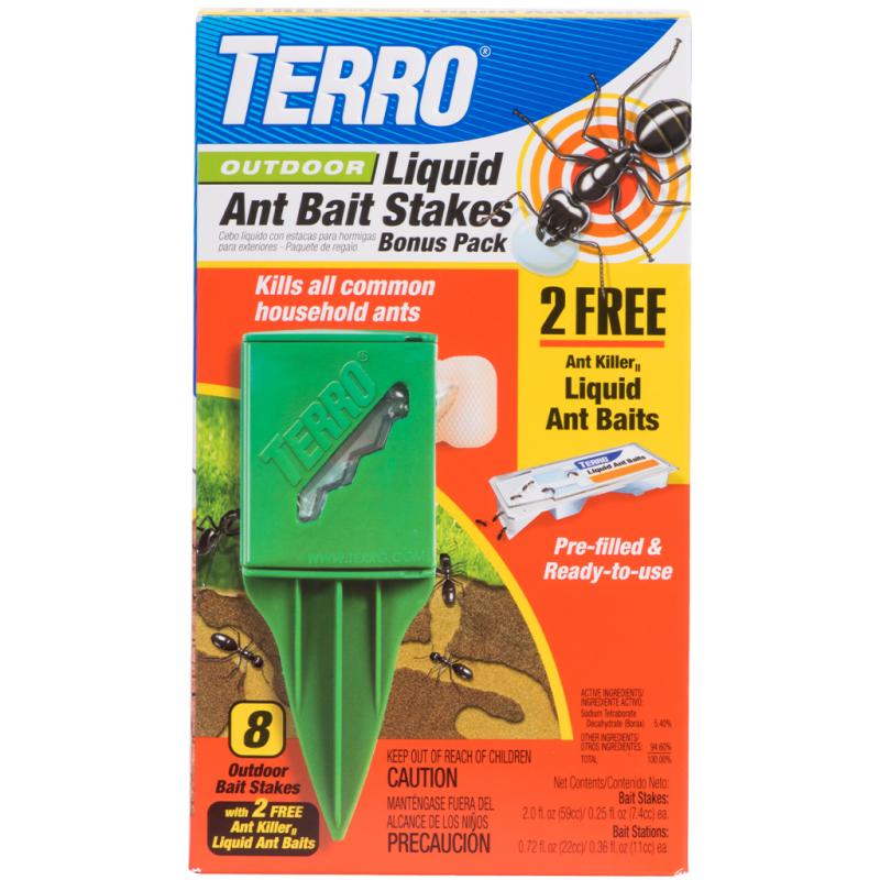 Description: Outdoor Liquid Ant Bait Stakes are the first liquid outdoor stakes on the market. Attracts and kills all common household ants including Argentine ants, ghost ants, cornfield ants, pavement ants, acrobat ants, white footed ants, little black ants, odorous house ants and other sweet-eating ants. They provide fast acting elimination of the ants you see and the ants you don't see. Contains borax.