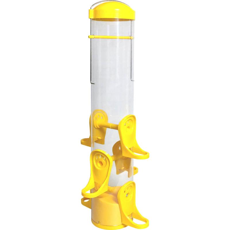 | The Stokes Select 15 in. Thistle Finch Feeder is a vibrantly yellow tube feeder constructed of plastic that protects and contains seed while allowing you to see when the feeder needs to be refilled. Finches love its ergonomic U-shaped perches, while 6 strategically placed ports provide feeding space for many birds simultaneously. Each port features 3 feeding holes, maximizing seed availability for hungry finches. A metal hanger comes pre-attached for convenient hanging. The feeder disassembles for easy cleaning, while its cap slides up the hanging wire for easy filling. This 15 in. thistle feeder is attractive to many varieties of finches, turning your backyard birding station into a finch feeding destination! 1.7 lb thistle |