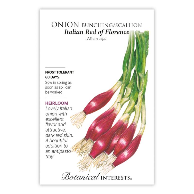 | This old Italian heirloom is commonly used in Italy for pinzimonio, a colorful mixture of raw vegetables served with a separate bowl of olive oil, vinegar, and salt. Use this colorful, torpedo-type, young red onion in almost any dish requiring onions. Hard to find in grocery stores, so grow it at home! |