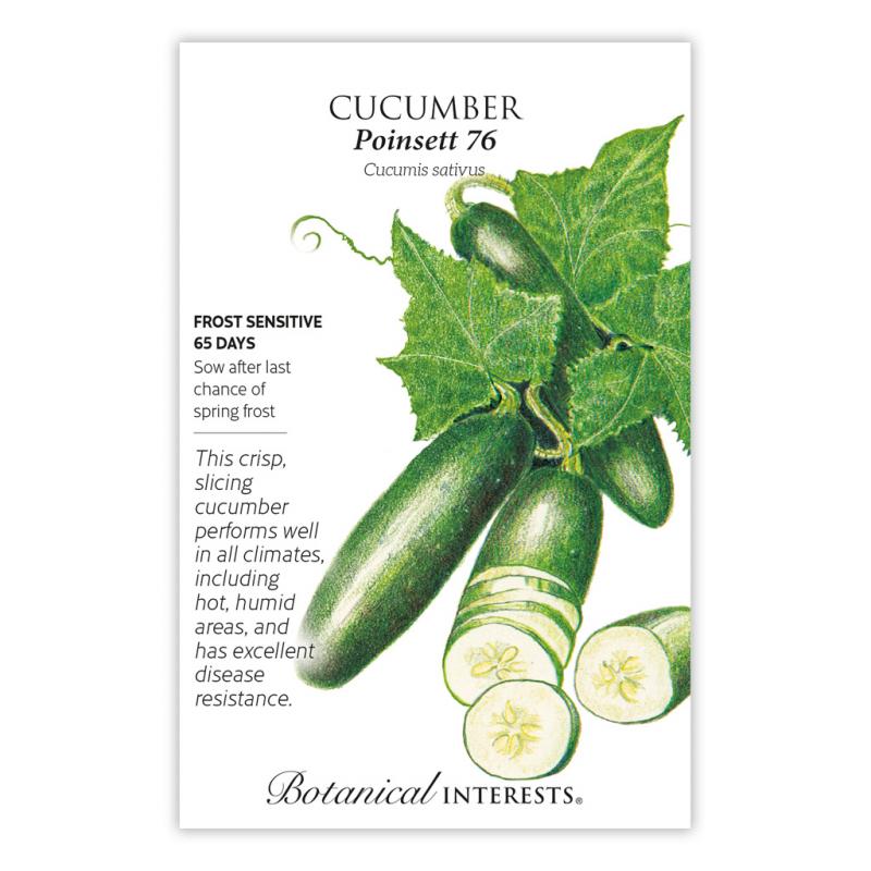 | You can depend on 'Poinsett 76' for a bountiful harvest of dark green, straight cucumbers produced on plants that resist many common diseases, including mildews, anthracnose, scab, and angular leaf spot. Cucumbers average 7"–8" long and 2 ½" in diameter and are produced over a long harvest period. Enjoy fresh slices in salads or with your favorite dip. |