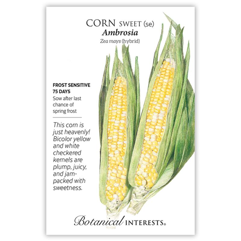 | In Greek mythology, ambrosia was known as “the food of the gods,” and 'Ambrosia' lives up to its name. With 8" long ears and tender, creamy kernels, this bicolor sweet corn is perfect for a midseason harvest thanks to its early vigor and excellent disease resistance. 'Ambrosia' is perfect for a summer barbecue and will be the talk of the block. |