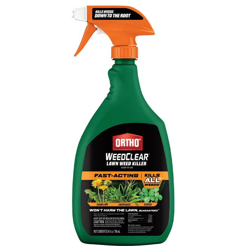 | Kill weeds in your lawn, including dandelion, chickweed, clover, crabgrass, and foxtail with the Ortho WeedClear Lawn Weed Killer. Fast-acting with results in one application. Kills weeds to the roots but won't harm the lawn (when used as directed). For use of grasses, including Bermudagrass, Buffalograss, Fescues, Kentucky Bluegrass, Ryegrass, and Zoysiagrass. Apply to weeds using the attached battery-powered comfort wand. |