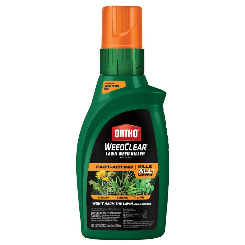 | Kill weeds in your lawn, including dandelion, chickweed, clover, crabgrass, and foxtail. Fast-acting with results in one application. Kills weeds to the roots but won't harm the lawn when used as directed. The concentrated formula can be easily applied with an Ortho Dial N Spray or tank sprayer. Active ingredients: 2,4-D, dimethylamine salt: 6.423%, Quinclorac: 2.13%, Dicamba, dimethylamine salt: 0.60%. |