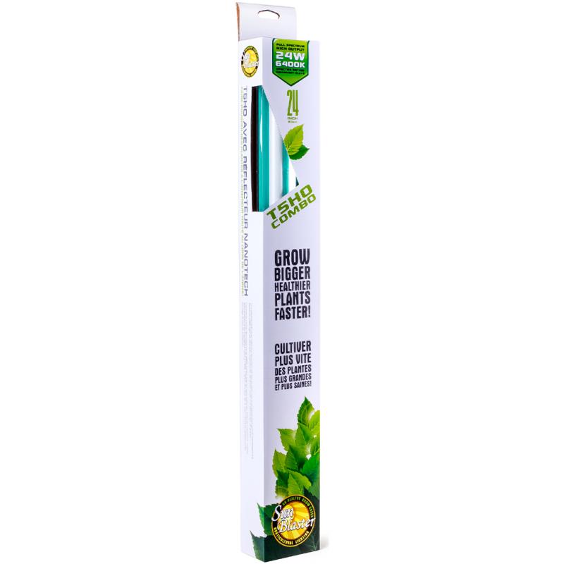 | All SunBlaster T5HO Combos include SunBlaster's T5HO Electronic ballast, 6400K lamp, power cord with on/off switch, and jumper plug with both hanging and flat surface mounting clips. SunBlaster T5HO lamps promote incredible health and vigor of seedlings and cuttings. Root development is superior relative to other lighting sources. While our SunBlaster T5HO lighting is excellent for starting seeds and cuttings, it's also able to produce enough light for full term growth. Due to the minimal heat output of our SunBlaster T5HO lighting, fixtures can be placed 6 - 8 inches above the plant canopy maximizing photosynthetic response and growth. |