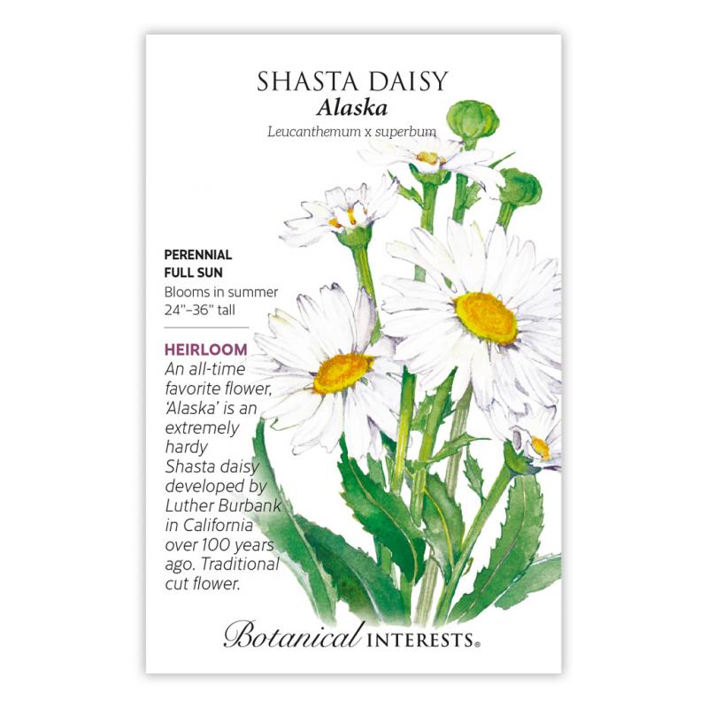 | Shasta daisy is possibly the oldest hybridized American garden flower. Large, bright white flowers bloom continuously from summer to fall, making it a beautiful addition to any perennial garden. Plants are easy to grow from seed, and long-lived for years of enjoyment. The 3" blooms attract bees and butterflies, and make great cut flowers. Produce colored flowers by placing stems in a water with food coloring! |