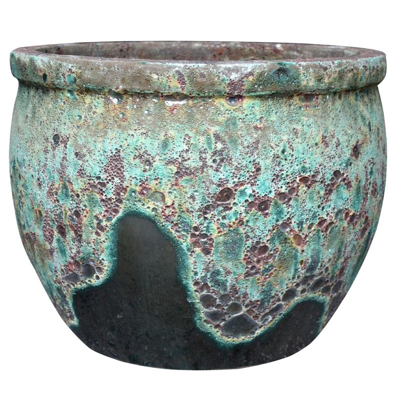 Glaze Rim Volcanic Pot Blue