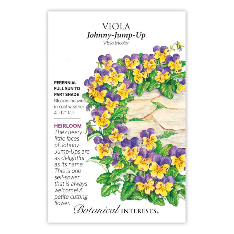 | Nothing is as charming as a patch of Johnny-Jump-Ups poking their heads above the snow. Although violas are perennial, they are often grown like annuals because they do not perform well in an extended period of heat. USDA zones 4-8 can reliably plant violas as perennials. Other areas may want to use them as cool-season annuals. Violas will return in all zones by reseeding. Edible flowers are charming on salads and desserts. |