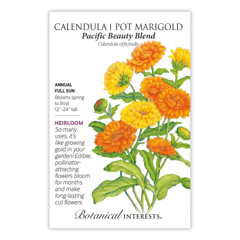 | The calendula, an old, English-cottage-garden flower is a long-blooming addition to any modern garden. Its gold and orange flowers bloom from spring to fall on fairly drought- and heat-tolerant plants. Grow it for attracting pollinators and its sunny beauty in the garden, then save some blooms for fresh or dried floral arrangements; dried petals can be used in baking or teas. Calendula gets its common name, pot marigold, because the flower resembles a marigold, and has often been used in pots of soup or stew for both color and flavor. |