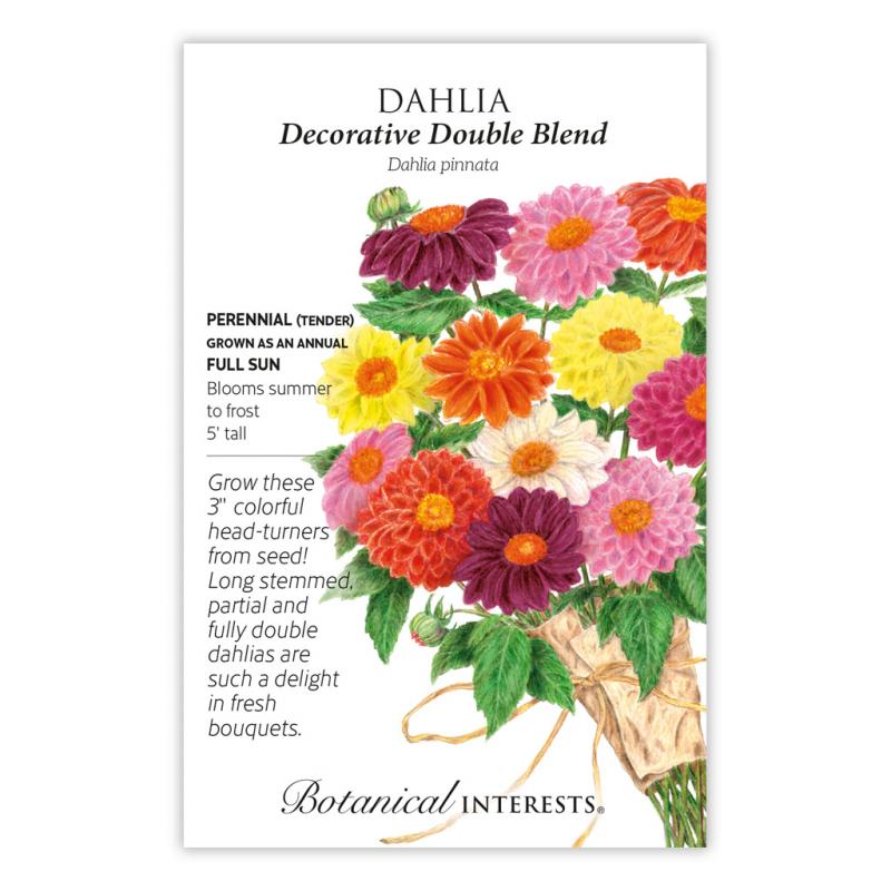 | You can grow breathtaking dahlias from seed and enjoy them year after year. This very tall blend of eye-popping colors is especially suited for the back of the garden, and the long, sturdy stems make it great for cut flowers. Blooms appear about 90 days from sowing, so that you can enjoy beautiful blooms come summer. Perennial in USDA zones 7–10; in colder climates, at season's end, tubers can be lifted and stored indoors over winter. Attracts butterflies and other pollinators. Use the edible, mild-flavored petals to garnish salads, desserts, and drinks. (The flower's central disk, while edible, can be bitter.) Dahlia pinnata tubers are edible, with a flavor somewhat similar to raw jicama. The taste of the crisp, juicy tubers is bland to mildly sweet. |