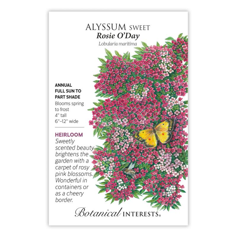 | A sweetly scented alyssum covered with tiny, rose-pink flowers in mini-rosettes. Perfect for continuous color in rock gardens, rock walls, along a garden path, or spilling from your favorite containers. Edible flowers have a mild, grassy/mustardy flavor; the clusters make a charming garnish to salads and desserts. A 1961 All-America Selections award winner. |
