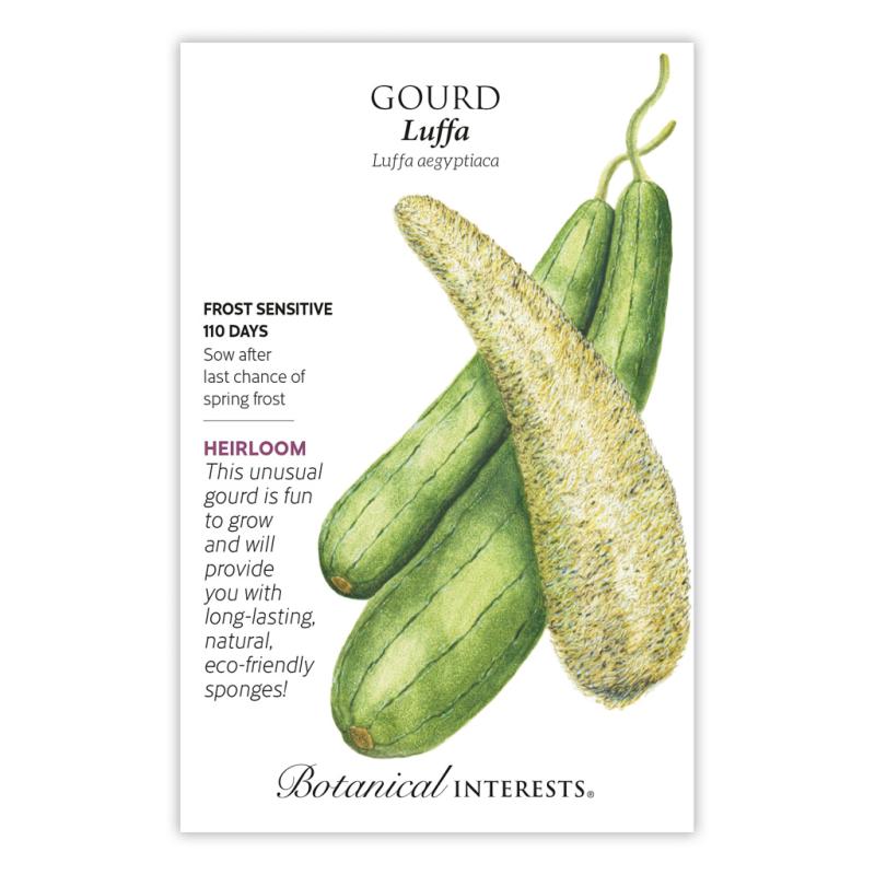 | Luffas are great for scrubbing your back, washing dishes, cleaning the barbeque grill and much, much more! Grow your own supply of sponges and give some as gifts! The 12"–24" long gourds are so interesting to watch develop in the garden. Vigorous vines can reach 20'; grow on a trellis or fence. |