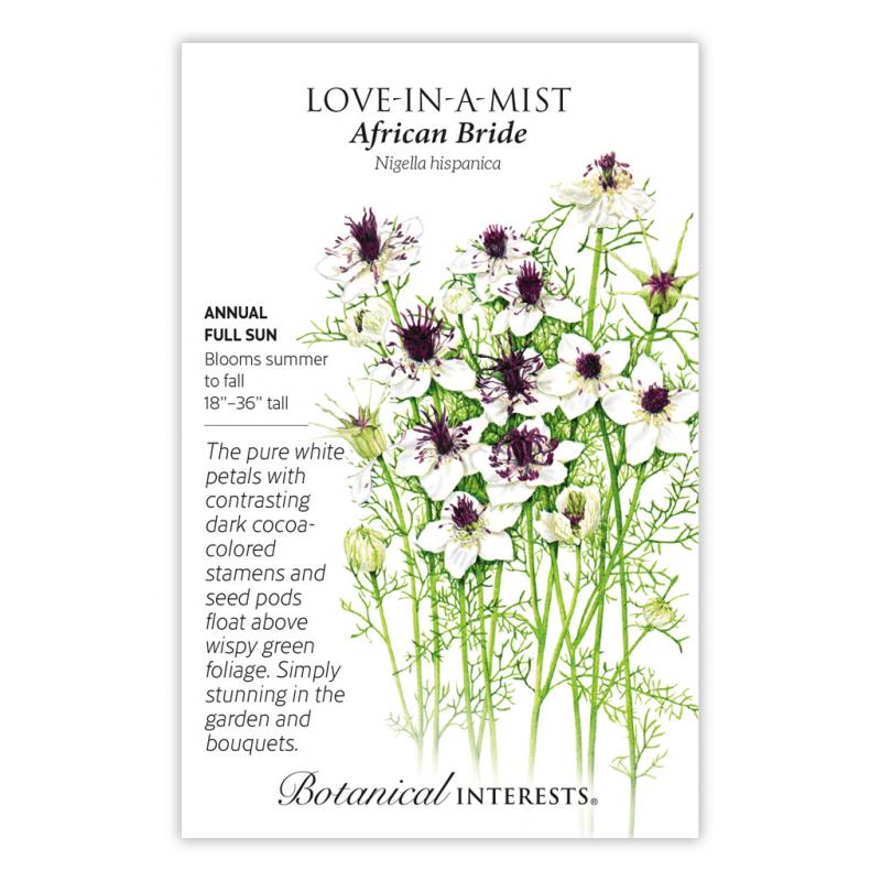 | Intriguing, dual-colored blooms on practically care-free plants with lovely, airy foliage. 'African Bride' will be a dramatic addition to your cut flower arrangements, and the bees will love it in the garden. Interesting, nearly black, miniature, papery "lanterns" form after flowers drop. This species is native to northern Africa and southwest Europe and is well-adapted to dry conditions. |