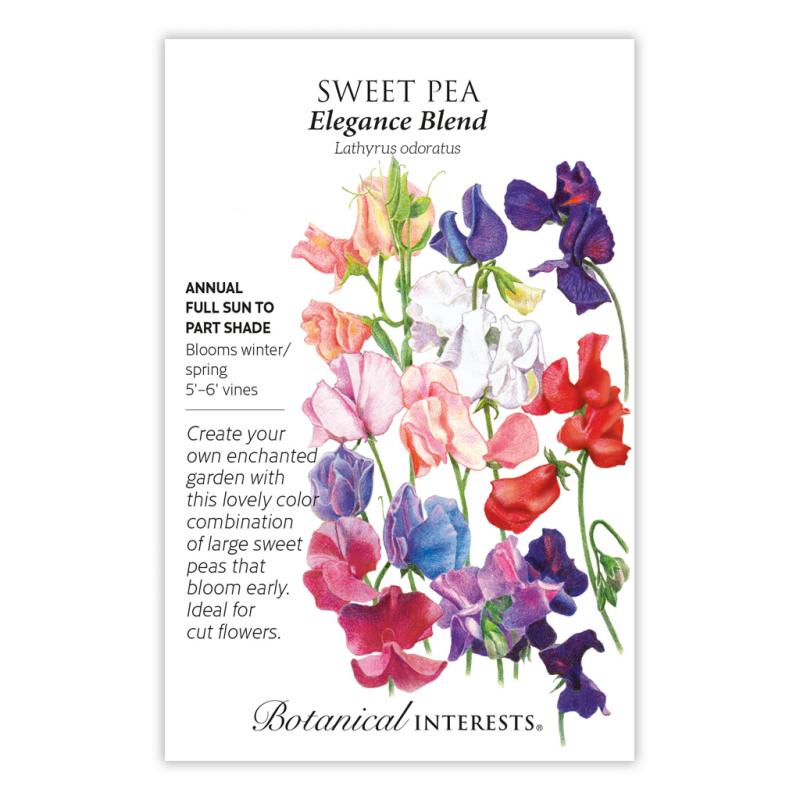 | An elegant, colorful mix of mildly-scented, long stemmed, superior cut-flower cultivars. Ideal for mild climates, Elegance Blend flowers during the winter when daylight is shortest, and spring where climates are cool. Enjoy their beauty and aroma in the garden and bouquets. Excellent for fall sowing in mild climates or winter greenhouse production. Caution: Parts of this plant are toxic if ingested. |