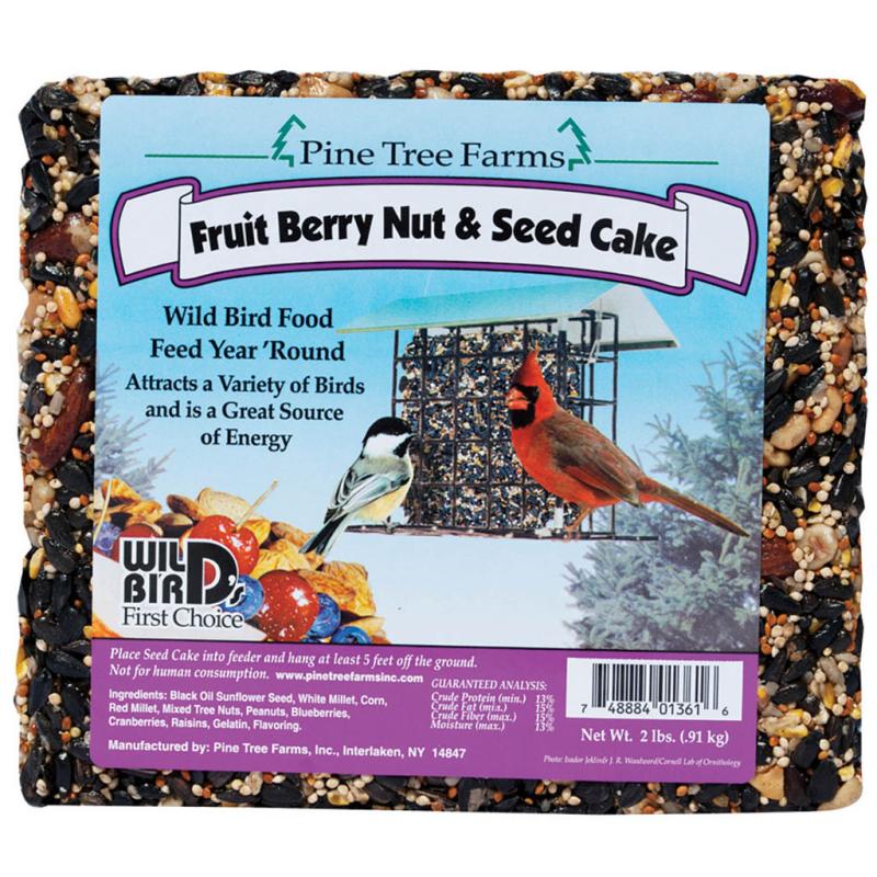 | Each Large Fruit, Berry and Nut Seed Cake consists of the finest seeds and nuts to attract a variety of wild birds. Developed for year round feeding. Vacuum packaging to optimize freshness and shelf life. Contains black oil sunflower seed, white millet, corn, red millet, peanuts, mixed tree nuts, dried blueberries and gelatin. |
