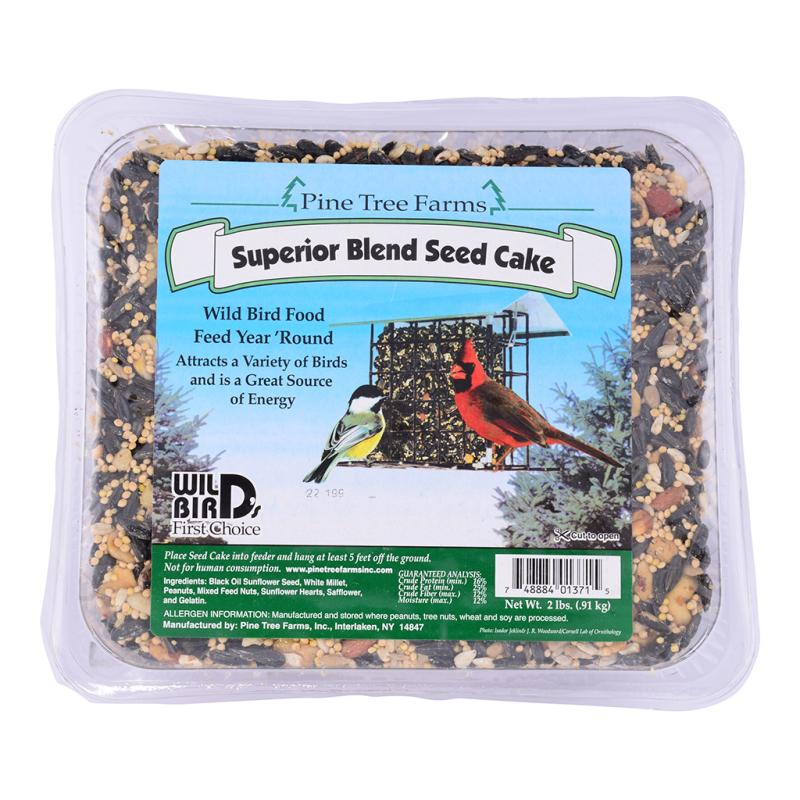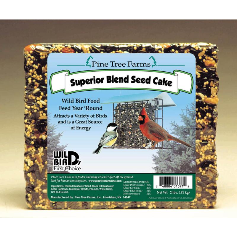 Description: Wild Bird Superior Blend Seed Cake is developed for year 'round feeding of wild birds. Each cake consists of the finest seeds and nuts to attract a variety of wild birds. Natural binder holds cake together in all kinds of weather. Large cakes last much longer.