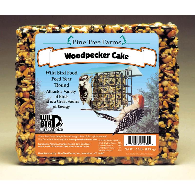 | Wild Bird Woodpecker Cake is developed for year 'round feeding of wild birds. Held together with a natural binder that holds the seeds and nuts together in all kinds of weather. A must for serious wild bird lovers. Ingredients include peanuts, almonds, cracked corn, sunflower hearts, black oil sunflower seed and mixed tree nuts. |