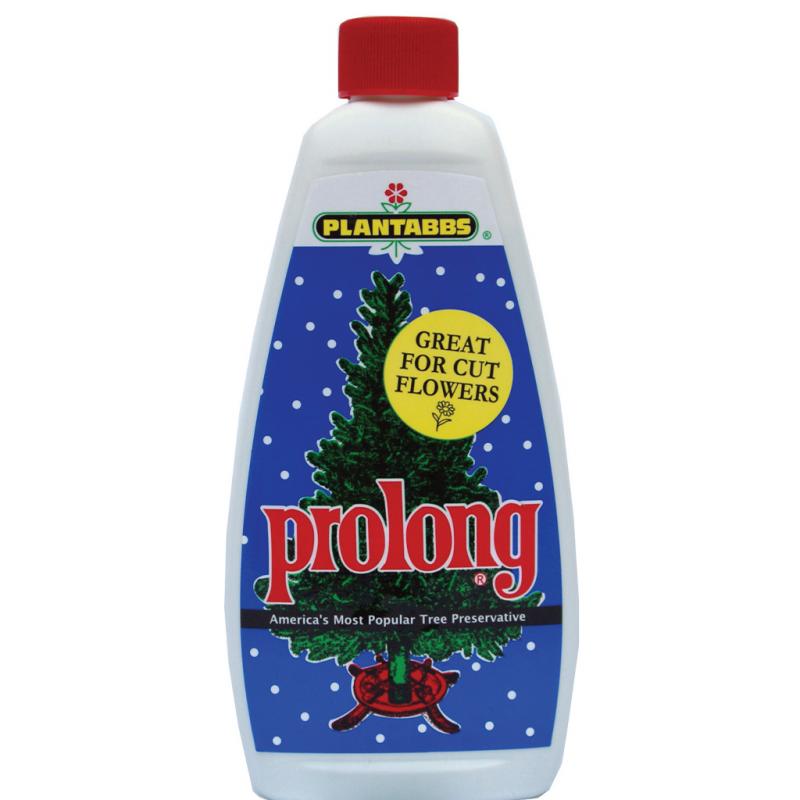 | Christmas tree preservative. By keeping your tree watered with Prolong you will find the tree will retain their needles longer in the dry heat of your winter home. Prolong causes cut trees to absorb more water than it would otherwise, thus extending the life of the tree. Safe for use with children and pets, when used as directed. |