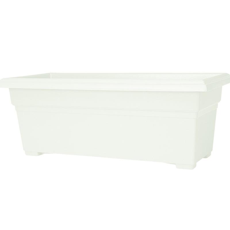 Description: Stylish planters with classic lines are constructed of durable plastic with an attractive matte finish. Lightweight but durable, with removable drainage plugs. Each planter features a deep root zone to promote healthier plants. Can be used with Novelty Flower Box Trays. Five year warranty! White.