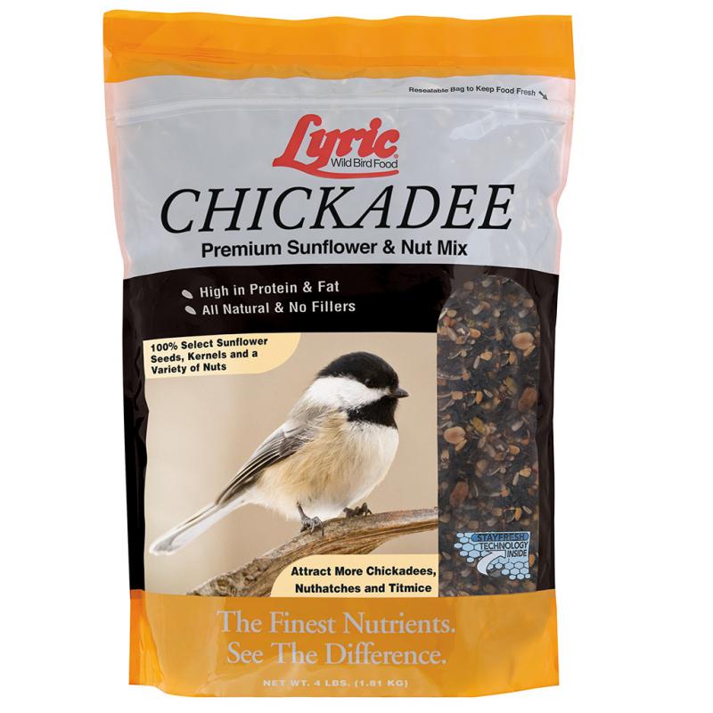 | Lyric Chickadee Mix was created to attract the cute, little, "formal" and friendly chickadee to your backyard. Chickadees like seeds like black oil and black striped sunflower for the kernels they contain. Lyric Chickadee contains these two seeds as well as the shelled kernels. Additionally, this mix contains shelled peanuts, pecans, and pistachios. This quality mix will attract chickadees, but can also bring titmice, woodpeckers, nuthatches, and other songbirds to your backyard. |