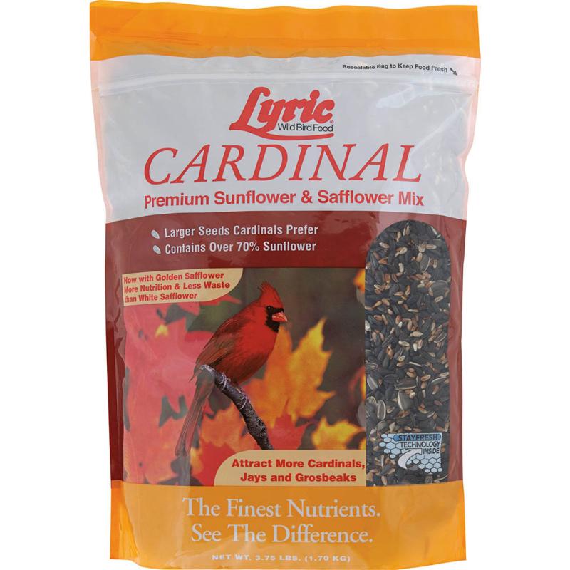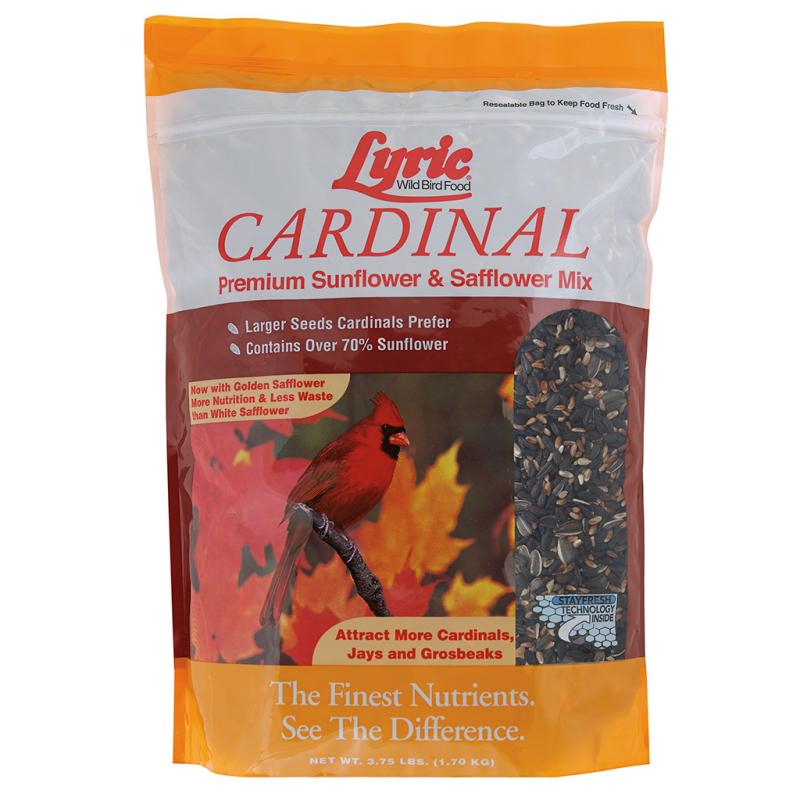 | Lyric Cardinal Mix hand-crafted mix is designed to attract more Cardinals to your feeder. This beautiful blend features a variety of sunflower seeds that attract wild birds with prominent seed-cracking bills, like cardinals, jays and grosbeaks. This mix also includes golden safflower, an organic, chemical-free hybrid safflower. |