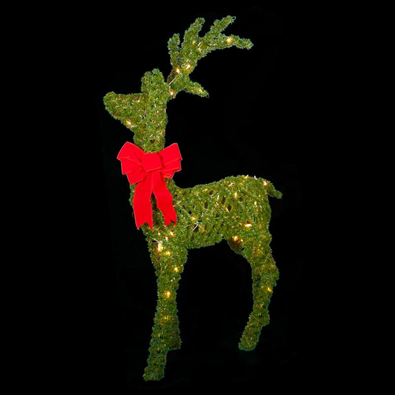 Deer Green Rattan Stand Deer with 70 Clear Lights