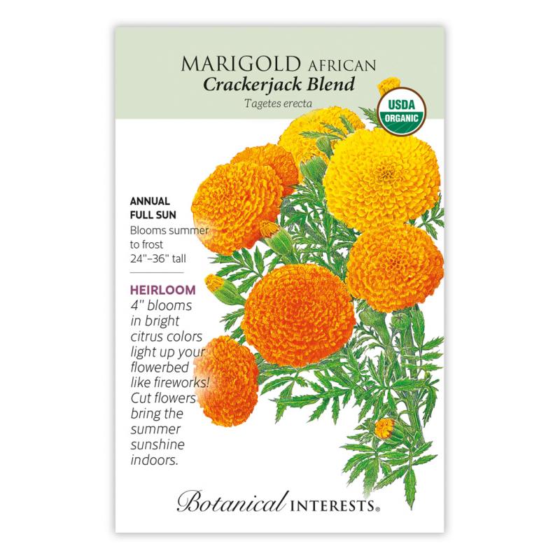 Marigold African Crckrjack Organic Botanical Interests Flower Seeds